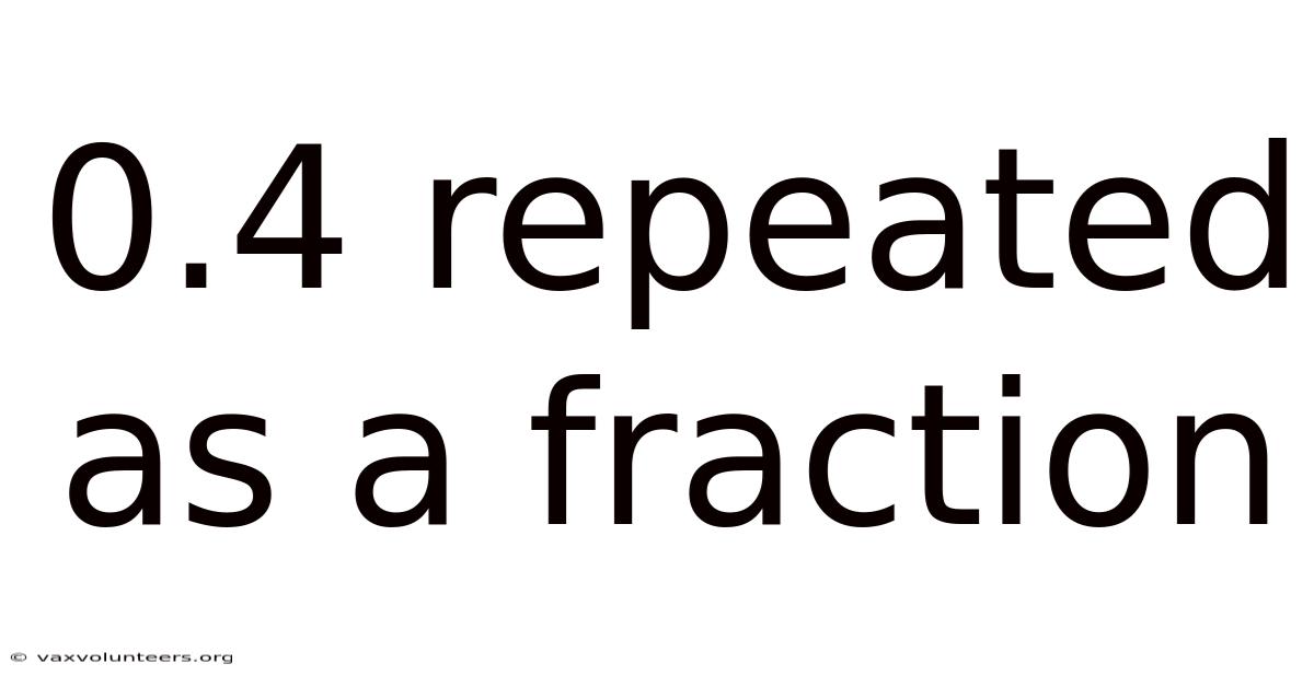 Many learners initially struggle with repeating decimals because they appear unending and unpredictable. On the flip side, recognizing the structure behind the repetition reveals a consistent mathematical rule. By learning how to convert 0.In real terms, 4 repeated as a fraction, you gain insight into the relationship between decimal notation and fractional representation. This concept frequently appears in standardized testing, advanced coursework, and practical quantitative fields, making it an essential tool for academic and professional success.