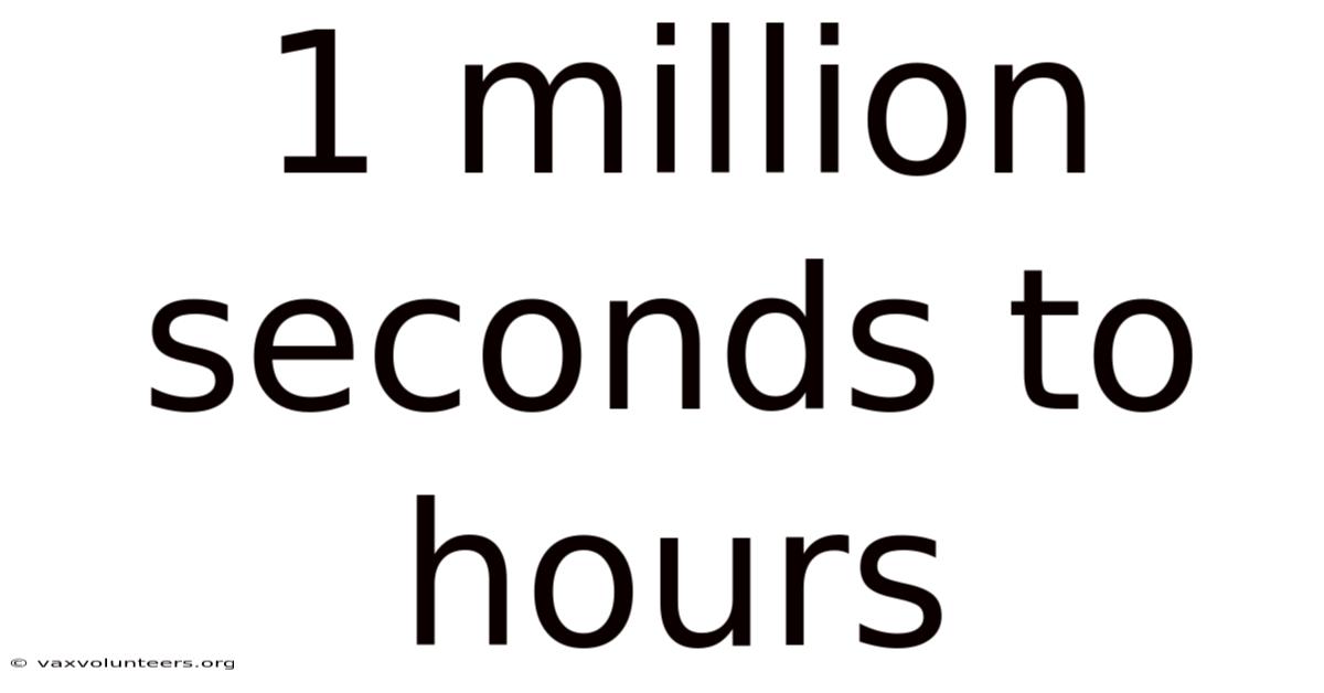 Time is the invisible framework upon which we structure our lives, yet its fundamental units often remain abstract. This conversion, which yields approximately 277.Now, this seemingly large number transforms into a surprisingly manageable figure when converted into hours, revealing a powerful lesson in perspective and the elegance of systematic measurement. But converting 1 million seconds to hours is more than a simple arithmetic exercise; it is a gateway to understanding the hierarchical architecture of time itself and appreciating how colossal durations can be distilled into comprehensible human-scale units. We speak of hours, days, and years with instinctive familiarity, but what happens when we zoom in to a massive scale, like 1 million seconds? 78 hours, serves as a perfect case study in breaking down complexity Easy to understand, harder to ignore. Nothing fancy..