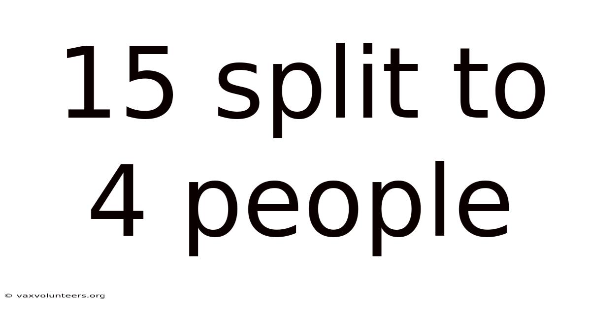 At first glance, the phrase "15 split to 4 people" seems like a simple arithmetic problem: 15 divided by 4 equals 3.Which means it forces us to confront the difference between equal and fair, the practicality of dealing with remainders, and the social dynamics of consensus. Even so, this deceptively simple statement opens a door to one of humanity's oldest and most persistent challenges: how to divide a finite resource fairly among a group. Whether the "15" represents slices of pizza, hours of work, an inheritance, a budget, or a pile of tasks, the core question transcends pure mathematics. And 75. This article will move beyond the calculator to explore the multifaceted concept of dividing 15 units among 4 people, examining it as a practical problem, a mathematical exercise, a social negotiation, and a foundational principle in resource allocation.