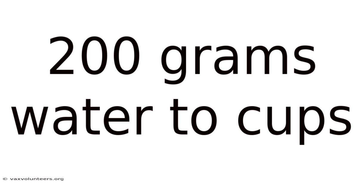 To convert 200 grams of water to cups, follow these steps: