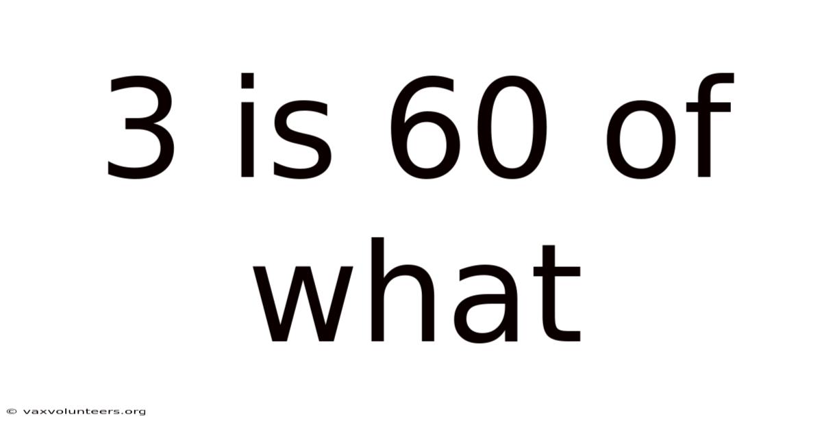 At first glance, the phrase "3 is 60% of what?" appears as a simple, almost cryptic, mathematical puzzle. But it’s a common type of problem encountered in middle school math, standardized test prep, and everyday financial or statistical calculations. Yet, this deceptively simple question holds the key to understanding a fundamental and powerful concept: reverse percentage calculation. In essence, it asks us to find the whole when we are given a part (3) and the percentage that part represents of the whole (60%). That's why mastering this allows you to answer questions like, "If a discounted price of $30 represents 60% of the original price, what was the original price? " or "If 3 students in a class are 60% of the total, how many students are there?" This article will deconstruct this statement completely, transforming it from a puzzling query into a clear, step-by-step procedural understanding. We will explore the underlying mathematical principles, walk through the solution method with multiple examples, identify common pitfalls, and solidify your ability to solve this and similar problems with confidence Nothing fancy..