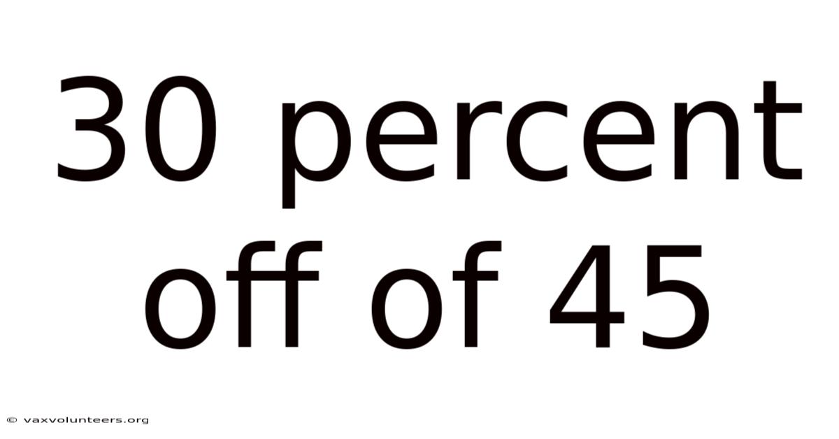 Navigating retail promotions and everyday financial decisions often begins with a simple yet crucial calculation: determining the final cost after a percentage reduction. When shoppers encounter a sign reading 30 percent off of 45, they are facing a foundational exercise in percentage discount mathematics. That's why understanding how to process this specific scenario not only reveals the exact final price but also builds the mental framework needed to evaluate sales, compare deals, and manage personal budgets with confidence. In today’s consumer-driven economy, the ability to quickly and accurately interpret percentage-based pricing is no longer optional; it is an essential component of financial literacy.