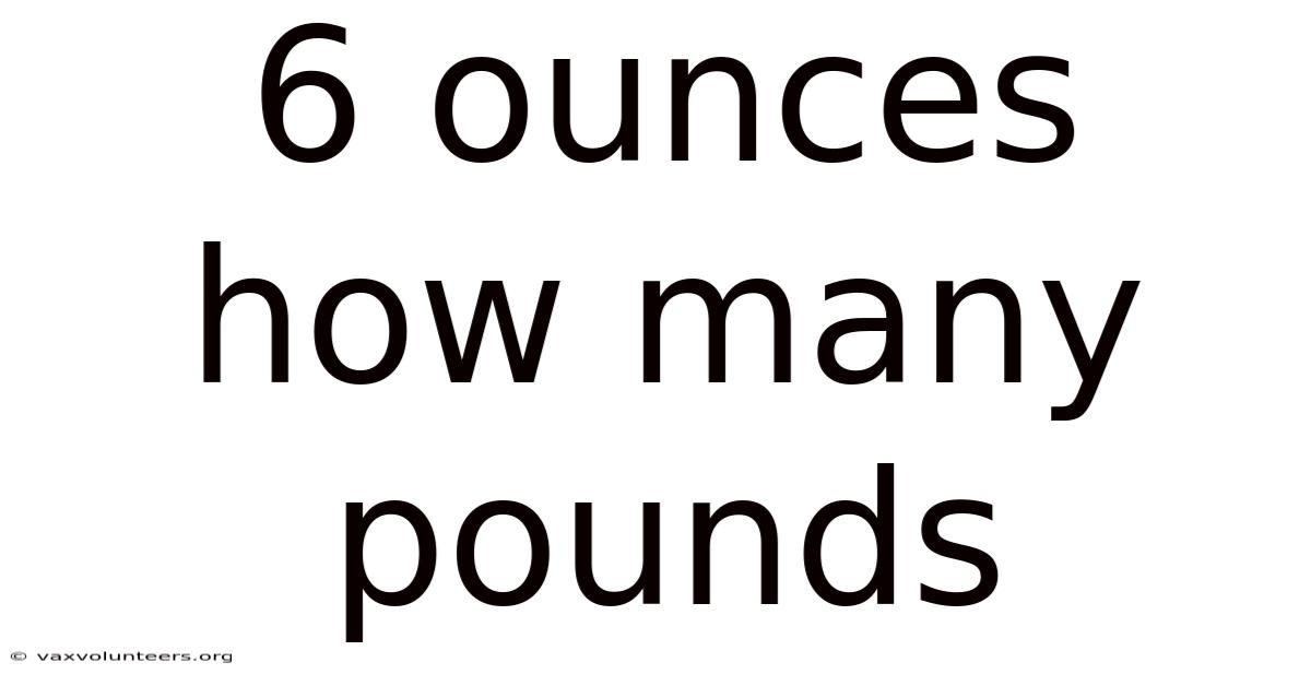 At its core, the conversion from ounces to pounds relies on a fixed mathematical ratio that has remained consistent across modern applications. That's why 375 pounds**. When you break down the math, **6 ounces equals exactly 0.That's why one pound is universally defined as exactly sixteen ounces in the avoirdupois system, which is the standard measurement system used in the United States and several other countries for everyday weight. While the answer may appear straightforward, the context behind this conversion reveals a rich history of standardization, practical utility, and occasional confusion that many people encounter when dealing with fractional measurements.