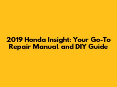 2019 Honda Insight: Repair Manual & DIY Guide
