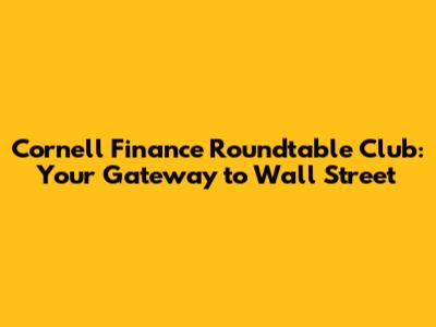 Cornell Finance Roundtable Club: Your Gateway To Wall Street
