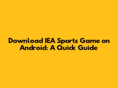 Download IEA Sports Game On Android: A Quick Guide