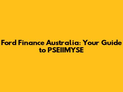 Ford Finance Australia: Your Guide To PSEIIMYSE