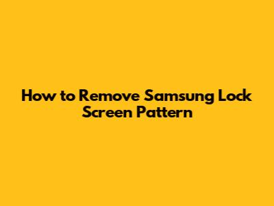 How To Remove Samsung Lock Screen Pattern
