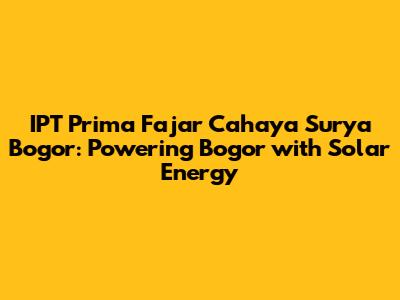 Are you ready to dive into the world of solar energy in Bogor? Let's explore IPT Prima Fajar Cahaya Surya, a key player in bringing sustainable power solutions to the region. In this article, we'll cover everything you need to know about IPT Prima Fajar Cahaya Surya Bogor, from what they do to why they're important for the community and the environment. So, buckle up and let's get started!
