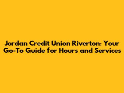Hey guys! Are you looking for the Jordan Credit Union branch in Riverton and need to know their hours or what services they offer? You've come to the right place! Navigating banking hours and services can sometimes feel like a maze, but don't worry; we're here to simplify everything for you. Whether you're planning a visit for a transaction, seeking financial advice, or just need to access their ATM, knowing the correct hours and available services is super important. Let's dive into all the details you need about the Jordan Credit Union in Riverton, so you can plan your visit with ease and confidence.