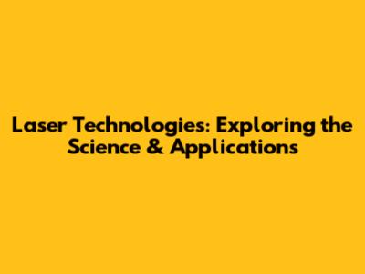 Laser Technologies: Exploring The Science & Applications