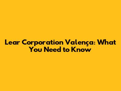 Lear Corporation Valença: What You Need To Know