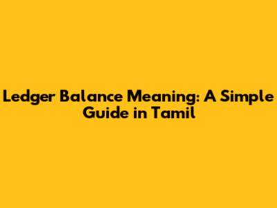 Ledger Balance Meaning: A Simple Guide In Tamil