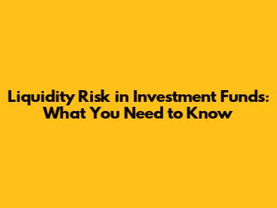 Liquidity Risk In Investment Funds: What You Need To Know