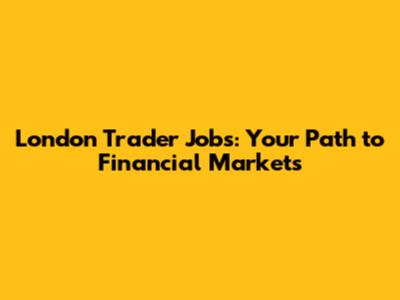 London Trader Jobs: Your Path To Financial Markets