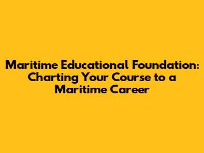Maritime Educational Foundation: Your Gateway To A Maritime Career
