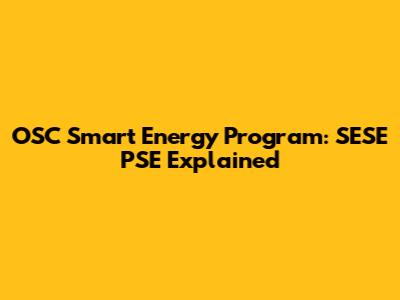 OSC Smart Energy Program: SESE PSE Explained