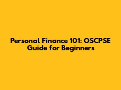 Personal Finance 101: OSCPSE Guide For Beginners