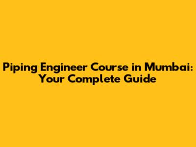 Piping Engineer Course In Mumbai: Your Complete Guide