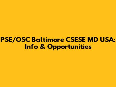 PSE/OSC Baltimore CSESE MD USA: Info & Opportunities