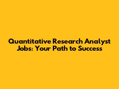 Quantitative Research Analyst Jobs: Your Path To Success
