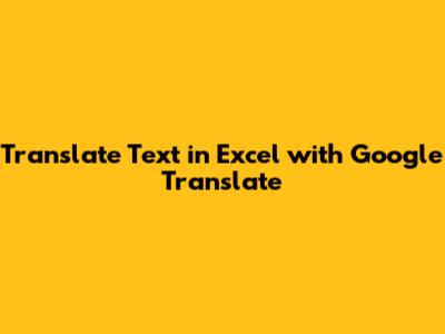 Translate Text In Excel With Google Translate