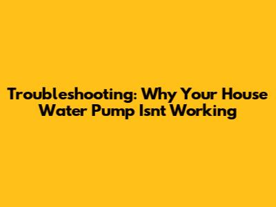 Troubleshooting: Why Your House Water Pump Isn't Working