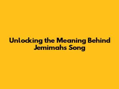 Unlocking The Meaning Behind Jemimah's Song
