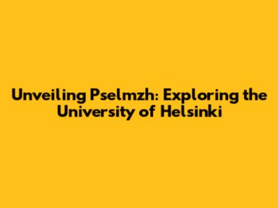 Unveiling Pselmzh: Exploring The University Of Helsinki