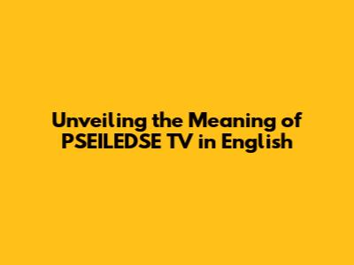 Unveiling The Meaning Of 'PSEILEDSE TV' In English