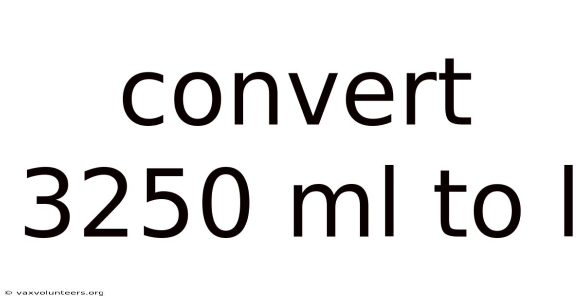 In our daily lives, we constantly interact with measurements—whether we’re cooking a meal, filling a water bottle, administering medicine, or conducting a science experiment. This article will explore this conversion in depth, moving beyond the bare calculation to build a strong understanding of why it works, when you’ll need it, and how to avoid common pitfalls. The specific task of converting 3250 mL to L is a perfect example of how a straightforward calculation can demystify quantities we see on product labels, in recipes, or in laboratory instructions. One of the most common volume conversions we encounter is between milliliters (mL) and liters (L). Because of this, converting 3250 mL to liters is not a complex puzzle but a simple division, yielding 3.At its core, this conversion hinges on a single, fundamental relationship: 1 liter equals 1000 milliliters. These units are part of the metric system, the global standard for scientific and most everyday measurements, known for its logical decimal-based structure. On top of that, 25 liters. Mastering this basic skill is a cornerstone of numerical literacy in a metric-oriented world Easy to understand, harder to ignore..