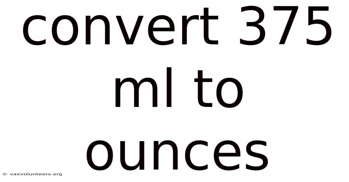 Alternatively, you can use the inverse conversion factor. Since 1 fluid ounce is equal to approximately 29.5735 milliliters, you can divide 375 by 29.5735 to get the same result: