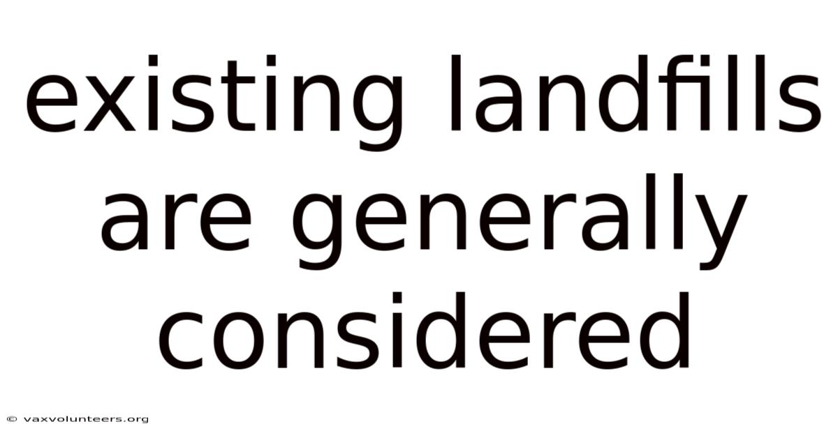 The phrase "existing landfills are generally considered" often sparks a complex mix of resignation, criticism, and pragmatic acceptance. Still, within the fields of civil engineering, environmental science, and waste management policy, the reality is far more nuanced. They are not merely holes in the ground but complex, regulated facilities designed to contain waste and mitigate its impacts, even as the world gradually shifts toward more sustainable circular economy models. Existing landfills are generally considered as massive, highly engineered infrastructure projects—the final, albeit imperfect, chapter in a linear waste disposal system that society has relied upon for over a century. In the public consciousness, landfills are frequently visualized as vast, smelly mountains of garbage, symbols of societal wastefulness and environmental neglect. Understanding this duality—the gap between perception and engineered reality—is crucial for informed discussions about our past, present, and future approach to solid waste Easy to understand, harder to ignore..