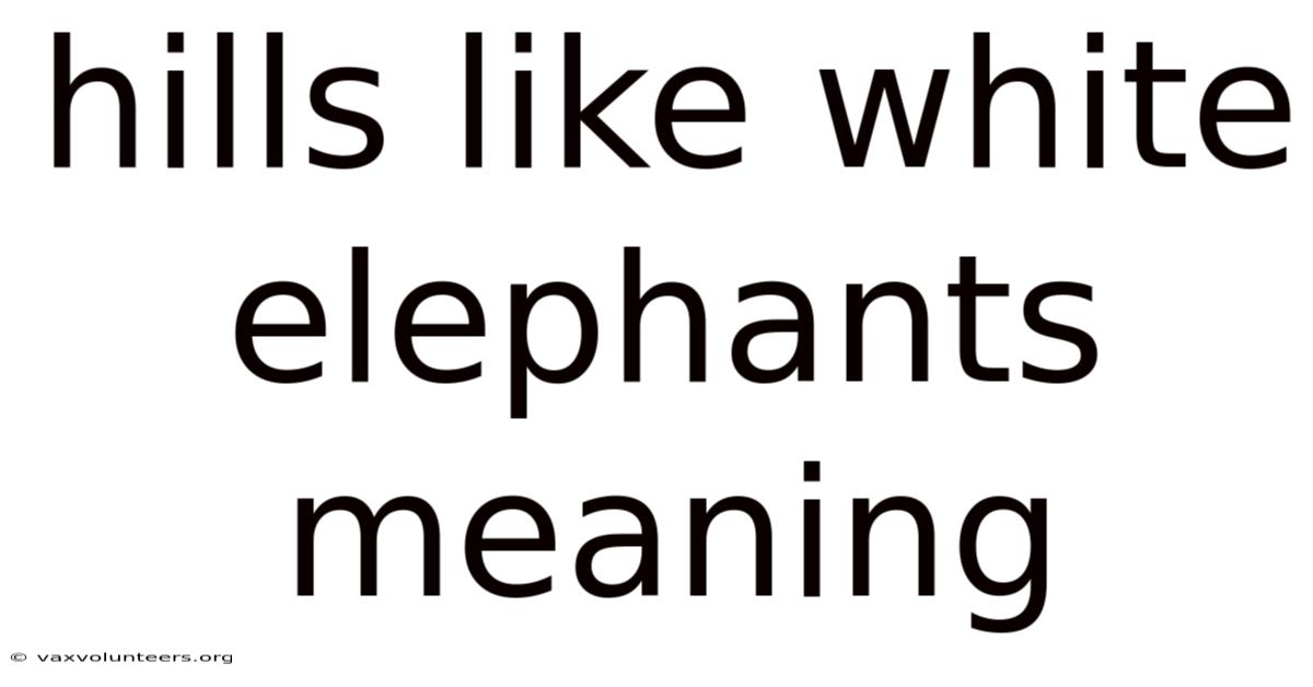 To fully grasp the hills like white elephants meaning, it is essential to first understand the historical and linguistic background of the term "white elephant." In Southeast Asian cultures, particularly in Thailand and Burma, white elephants were considered sacred and belonged to royalty. That said, they were also incredibly expensive to maintain and could not be put to work. Plus, as a result, gifting a white elephant became a subtle way to burden someone with a possession that was prestigious in appearance but practically ruinous. Over time, the phrase entered Western usage to describe any costly, unwanted, or difficult-to-dispose-of item Simple as that..
