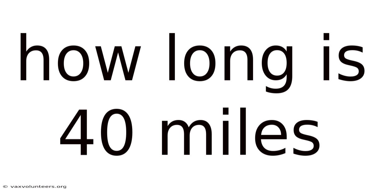 When someone asks how long is 40 miles, the immediate instinct is to provide a single number, but the true answer depends entirely on the lens through which you measure it. At its core, 40 miles is a fixed unit of distance, yet its practical meaning shifts dramatically depending on whether you are driving, cycling, walking, or simply visualizing geographic scale. Understanding this measurement requires moving beyond raw numbers and exploring how distance translates into time, physical effort, and everyday experience. This guide breaks down exactly what 40 miles represents across different contexts, offering clear conversions, realistic travel estimates, and practical insights that help you plan, train, or simply satisfy your curiosity.