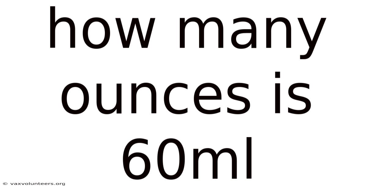 The Key Takeaway: 60 milliliters is approximately 2.03 US fluid ounces and approximately 2.11 Imperial fluid ounces. The difference, while seeming small (about 0.08 oz), can be significant in precise baking, pharmaceutical compounding, or chemical formulations where ratios are critical.