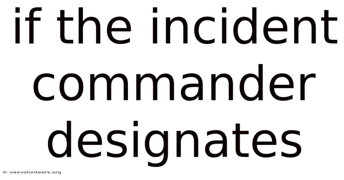To grasp the significance of "if the incident commander designates," one must first understand the framework within which it operates: the National Incident Management System (NIMS) and its core component, the Incident Command System (ICS). Worth adding: iCS was developed in the 1970s following a series of catastrophic wildfires in California, where communication breakdowns and unclear chains of command led to tremendous loss of life and property. That said, its genius lies in its modular, scalable structure that can be applied to any incident, from a local car accident to a multi-state hurricane. At the apex of this structure for any given operational period is the Incident Commander. The IC is the individual ultimately responsible for all incident activities, including the development of strategies and tactics and the ordering and release of resources. Their authority is derived from the agency or jurisdiction that has primary legal jurisdiction over the incident.