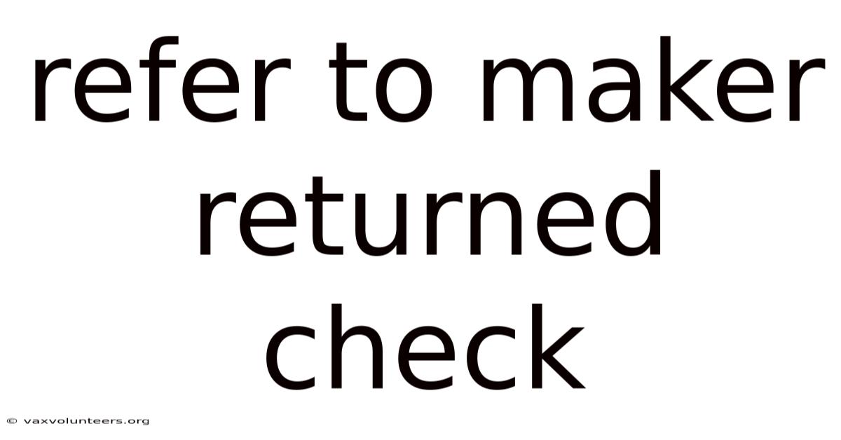 In the layered world of banking and finance, few phrases on a check return slip cause as much confusion and concern as "Refer to Maker." Unlike the more straightforward "Insufficient Funds" or "Account Closed," this cryptic message signals a problem that requires direct communication between banks and often places the burden of resolution squarely on the check writer, known as the maker. This full breakdown will demystify the "Refer to Maker" return, exploring its causes, processes, implications, and the critical steps both the payee (the person or entity receiving the check) and the maker must take to resolve it. Understanding this process is essential for anyone who writes or receives checks, as it directly impacts cash flow, financial relationships, and banking fees But it adds up..