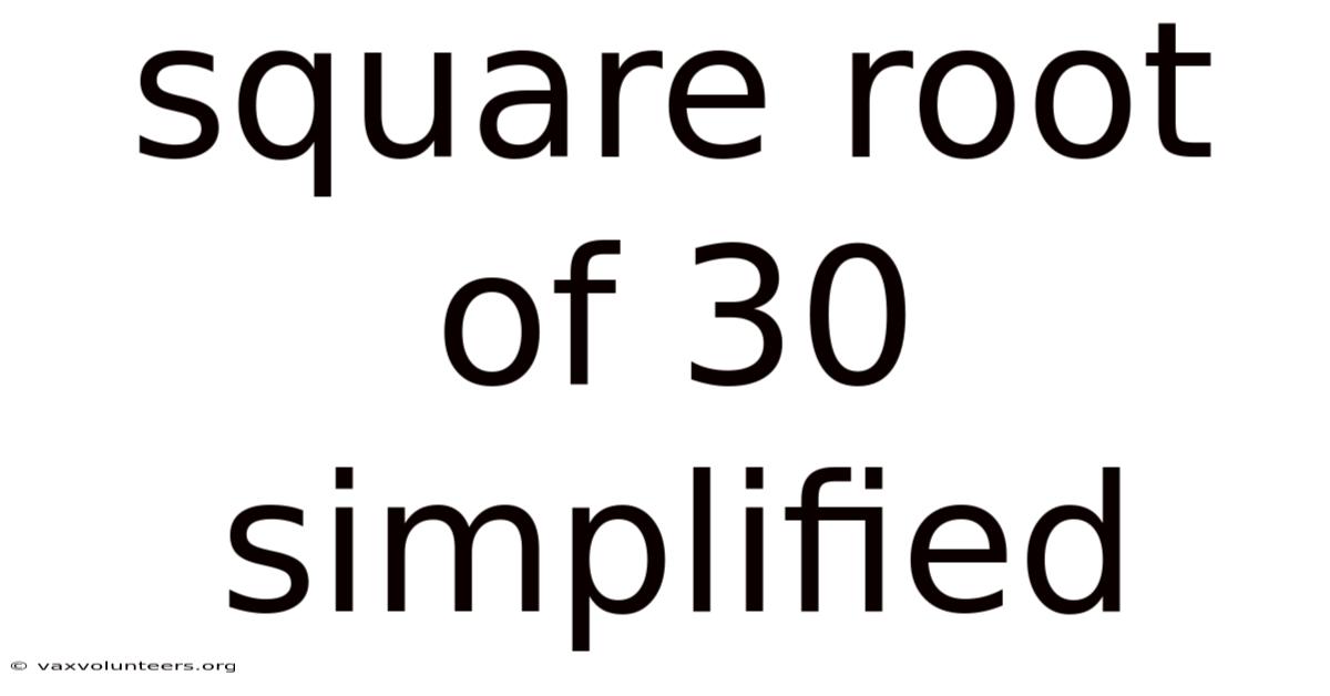 When you first encounter the expression √30, it might seem like a simple, standalone number. On the flip side, the phrase "square root of 30 simplified" points to a fundamental process in algebra and arithmetic: the simplification of radical expressions. This process is not about finding a decimal approximation (which would be roughly 5.477), but about expressing the square root in its most exact, reduced radical form. Simplification is the art of breaking down the number under the radical sign (the radicand) into its perfect square factors to see if any can be "taken out" of the square root symbol. Practically speaking, for √30, this journey reveals a surprising and important truth about its simplest form. This article will comprehensively explore what it means to simplify a square root, apply the process step-by-step to the number 30, understand why the result is what it is, and clarify common points of confusion surrounding this essential mathematical concept.