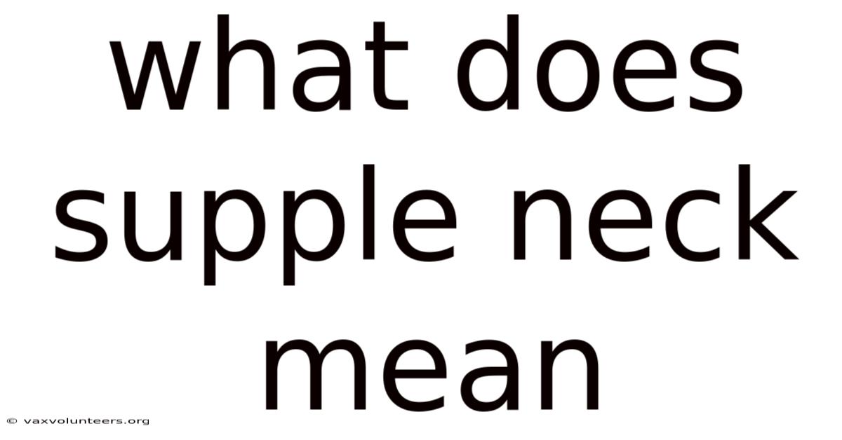This state stands in stark contrast to a stiff or rigid neck. Think about it: a supple neck honors this design by allowing this motion to occur with minimal compressive and shear forces on the delicate vertebrae, discs, and nerves. Plus, it feels heavy, may produce audible cracking or grinding (crepitus), and limits daily activities like checking blind spots while driving or looking over your shoulder. On top of that, the cervical spine is a marvel of engineering, housing the spinal cord, supporting a 10-12 pound head, and facilitating a greater range of motion than any other part of the spine. A stiff neck is often the result of chronic muscle contraction (hypertonicity), fascial restrictions, joint capsule tightness, or inflammation. It is, in essence, the gold standard for cervical biomechanics And that's really what it comes down to..