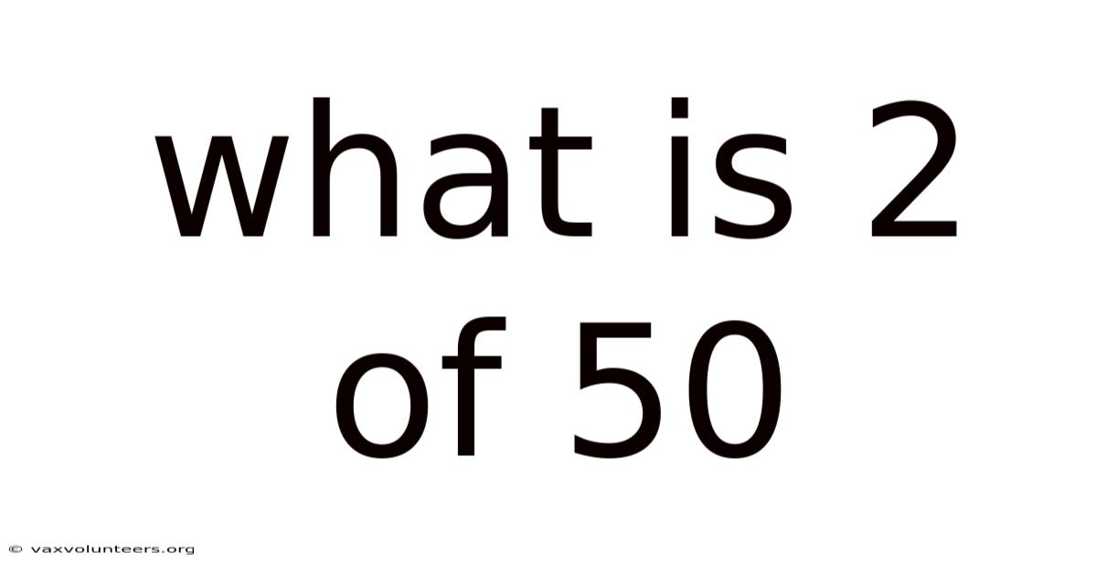 The phrase "what is 2 of 50" is a straightforward mathematical expression that represents a fraction or a part of a whole. In this case, it asks for the value of 2 out of a total of 50, which is essentially a ratio or proportion. Understanding how to interpret and calculate such expressions is crucial for solving problems involving percentages, ratios, and proportions. This type of calculation is commonly used in various fields, including mathematics, statistics, finance, and everyday life. In this article, we will explore the meaning of "2 of 50," how to calculate it, and its practical applications.