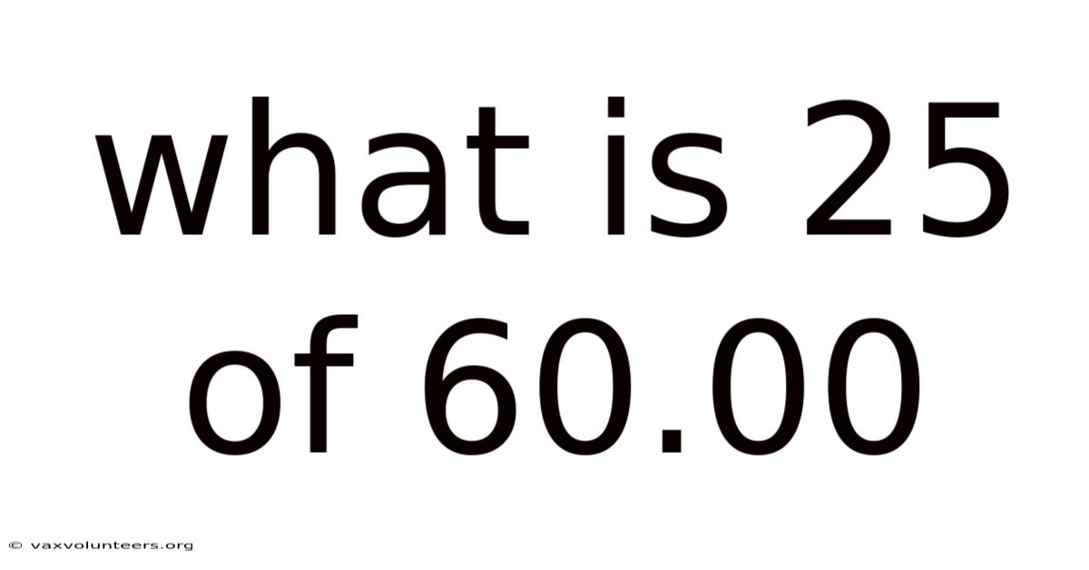At first glance, the phrase "what is 25 of 60.00" might seem like a simple, almost trivial arithmetic question. Whether you're calculating a discount on a $60 item, determining a grade score, or analyzing data, understanding how to find "25 of 60.On the flip side, this query opens the door to one of the most fundamental and widely applied concepts in mathematics, finance, science, and everyday life: the relationship between parts and wholes, expressed as percentages and fractions. 00" is an essential skill. This article will deconstruct this specific calculation, explore the underlying mathematical principles, demonstrate its real-world utility, and clarify common points of confusion, providing a complete and authoritative resource on the topic.