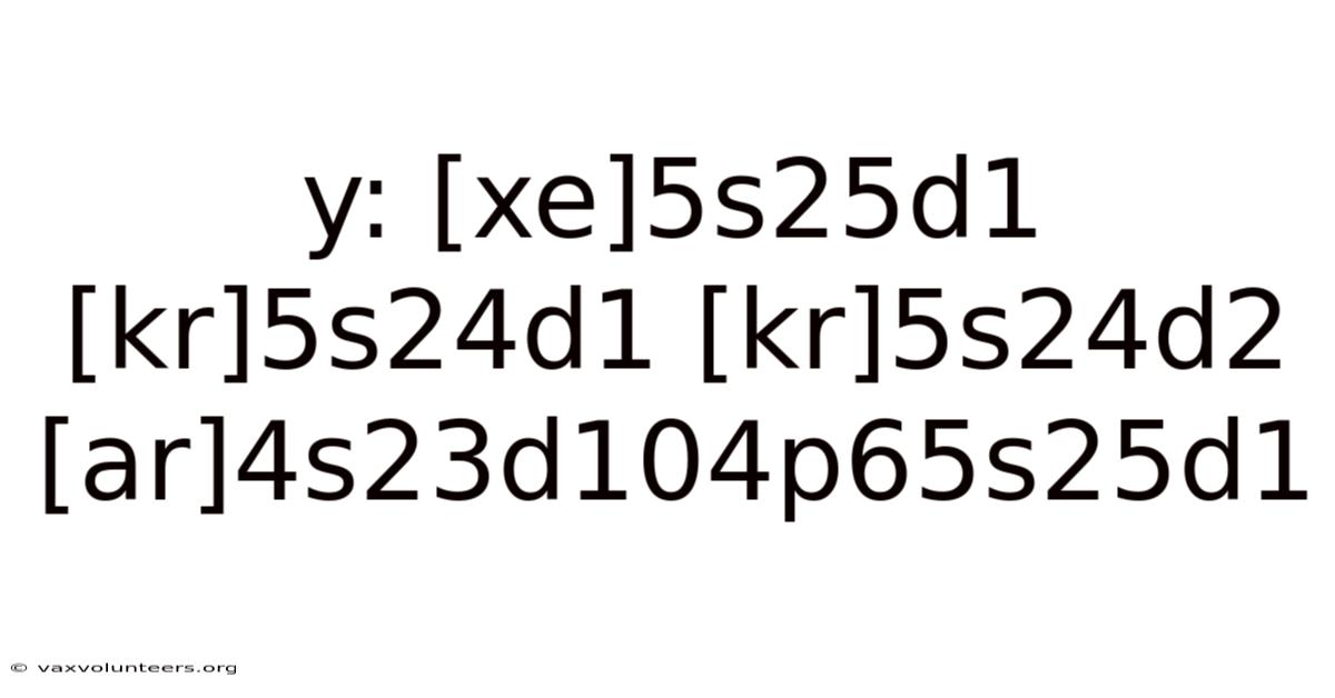 At first glance, the string y: [xe]5s25d1 [kr]5s24d1 [kr]5s24d2 [ar]4s23d104p65s25d1 appears cryptic, almost like a misformatted code. On the flip side, it is actually a series of electron configuration notations written in noble gas shorthand, each representing the arrangement of electrons in the orbitals of a specific atom or ion. The "y:" prefix is likely a typographical error or a misplaced label. That said, this collection serves as a perfect entry point into the fundamental language of chemistry: electron configuration. Mastering this notation is not merely an academic exercise; it is the key to predicting an element's chemical properties, its place in the periodic table, and its behavior in bonding. This article will demystify this notation, explain the principles governing it, clarify common exceptions, and demonstrate its profound importance in understanding the elemental world Simple, but easy to overlook..